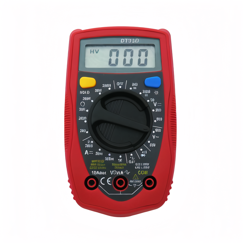 Model:DT33D DC voltage:200m-2000m-20-200-500V±0.5% AC Voltage:200-500V±1.0% DC current:2000u-20m-200m-10A±1.8% Resistance:200-2000-20k-200k-20M-200MΩ ±1.0% Power supply:6F22 type 9V battery LCD Maximum Display Value:1999